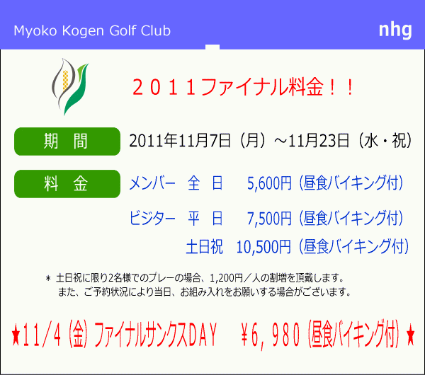 11月=ファイナル料金決定!!