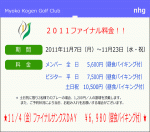 11月=ファイナル料金決定!! Author ブログ担当 Date 2011年9月11日 こんにちは(^-^) 少しづづ秋の気配も感じられるようになり、過ごしやすい毎日になってきましたね。 ゴルフをするには、とても良い季節です。皆様どんどんゴルフをやりましょう(^O^)/ 妙高高原のファイナル料金が決まりました。 11月コンペ等を計画されている幹事さま、あるいはプライベートで予定をされている皆様 とてもお得な料金となっておりますので、ぜひ妙高高原へご来場ください(^_-)-☆